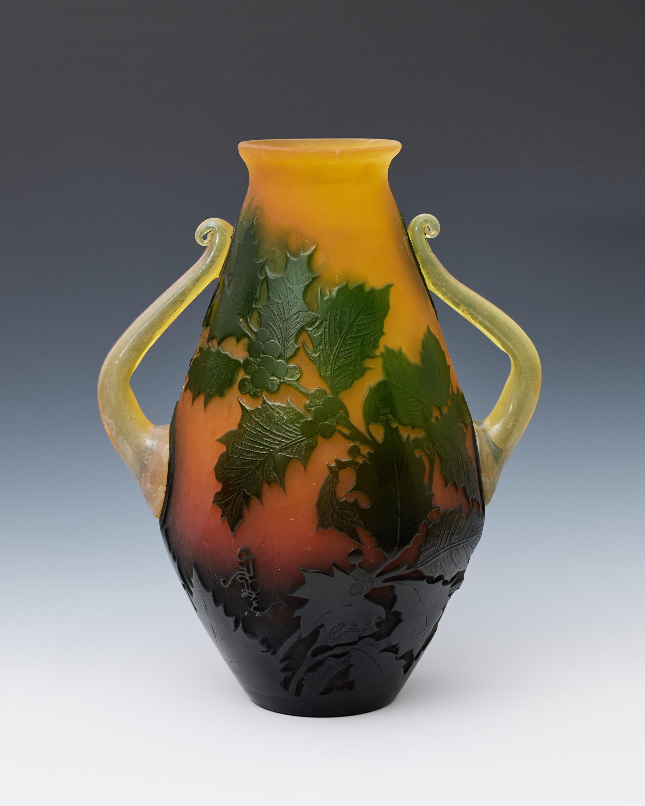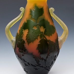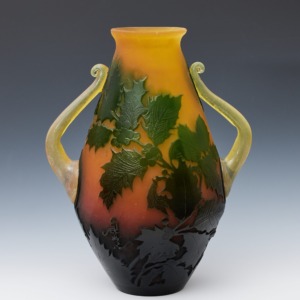 色硝子葉文花生